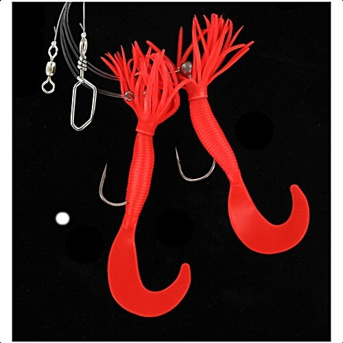 Fransen-Pilkvorfach mit zwei originalen Japan-Roten Fransen-Twistern. L nge: 120 cm Schnurdurchmesser: 0,75 mm Hakengr e 3/0