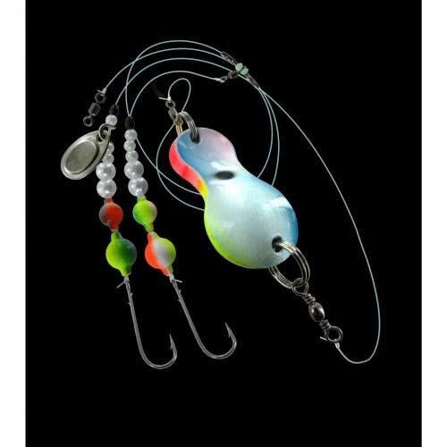 UV-aktiver Butt-Löffel am attraktiven Vorfach montiert Locklöffel zum Plattfisch- und Meeresangeln (UV-aktiver Butt-Löffel). Am Löffel ist ein komplett fertiges Vorfach mit zwei Haken (Wirbel, Haken, Spinnerblättchen, Schnur sowie Leuchtperlen) bereits montiert. Die unterschiedlichen Farbvarianten sowie die Leuchtperlen erhöhen den Lockreiz der Fische. Den Löffel absinken lassen - Rutenspitze anheben und 2-3 Rollenumdrehungen einholen und wiederholen. Die dabei entstehende ,Staubwolke" macht den Fisch neugierig und erzeugt einen Lockreiz.